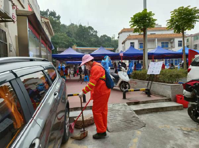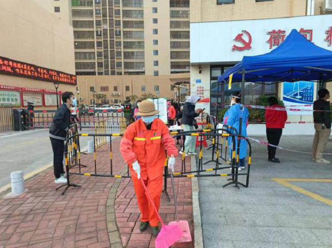 匯建公司環(huán)衛(wèi)工人不畏嚴(yán)寒、盡職盡責(zé),幫助社區(qū)工作人員迅速搭建核酸檢測設(shè)施,引導(dǎo)社區(qū)居民掃碼,細致做好核酸檢測點各項工作,扛起責(zé)任與擔(dān)當(dāng)。