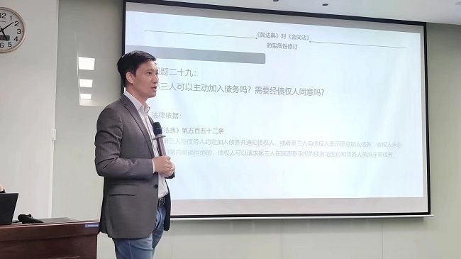 北京大成(珠海)律師事務(wù)所高級合伙人薛鵬律師以《民法典下合同實務(wù)研究》為主題貫穿培訓(xùn)課程,通過三十個常見的實務(wù)案例問題,詳細(xì)解讀了《民法典》對合同編作出的實質(zhì)性修改內(nèi)容,進(jìn)一步強調(diào)合同訂立、履行、變更、解除等管理工作重要性。參訓(xùn)人員積極互動交流,提出實操過程中合同履約、風(fēng)險控制等方面的疑問,切實化解工作中的難題。
