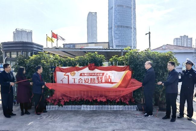1月6日上午,航空新城戶外勞動者工會愛心驛站舉辦揭牌儀式,市總工會黨組書記、常務副主席唐尚洪,市總工會副主席梁斌,金灣區(qū)人大常委會副主任、區(qū)總工會主席吳耀東,市總工會維權和職工服務部部長鄧康,區(qū)總工會黨組書記、常務副主席卓少卿,區(qū)交警大隊副大隊長賴遠強,聯(lián)港集團黨總支書記、副總經(jīng)理李增旺,聯(lián)港城運公司總經(jīng)理趙楠,以及各鎮(zhèn)總工會的有關負責同志和來自交警、環(huán)衛(wèi)、快遞、網(wǎng)約車、外賣等戶外勞動者代表共30人出席,儀式由區(qū)總工會副主席李輕舟主持。