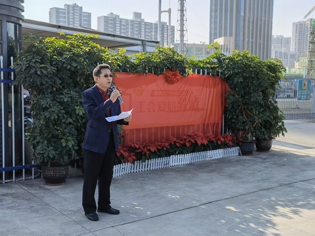 來自聯(lián)港城運綠化部的陳婷作為戶外勞動者代表發(fā)言,愛心驛站的建設是分享,也是共享,傳遞愛心,傳遞暖意,感謝區(qū)總工會和集團工會為大家創(chuàng)造了如此美好的“暖心之家”,讓他們享受到“熱可納涼、冷可取暖、累可歇腳、渴可飲水”等服務。
